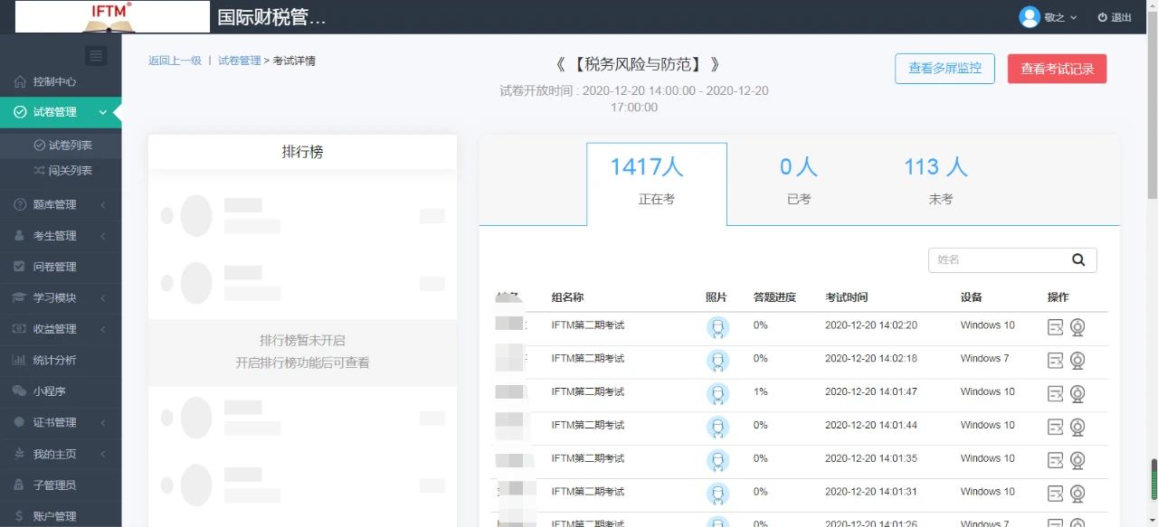 为做好疫情期间线上教学的有序延伸和有效衔接,积极探索教育教学改革,推动IFTM 教学工作创新发展,更好检验线上教学质量和学习效果,2020年12月20日,国际注册职业会计师协会中国代表处,对2020年第二期的部分IFTM 学者进行了线上考试。